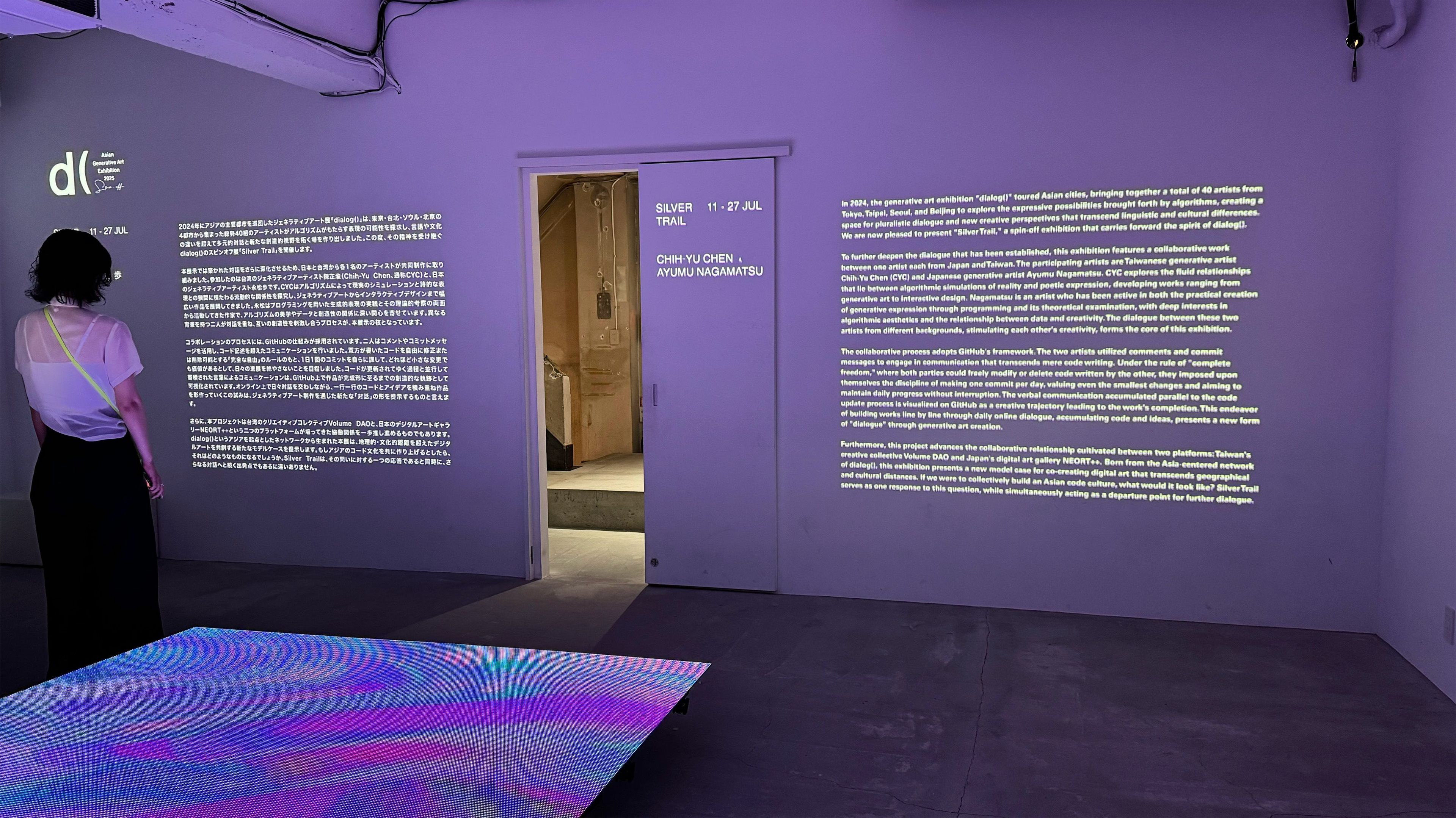 In 2024, the generative art exhibition "dialog()" toured major cities across Asia, bringing together a total of 40 artists from Tokyo, Taipei, Seoul, and Beijing to explore the expressive possibilities brought forth by algorithms. This exhibition created a space that transcended linguistic and cultural differences, fostering pluralistic dialogue and opening new creative perspectives. We are now pleased to present "Silver Trail," a spin-off exhibition that carries forward the spirit of dialog().